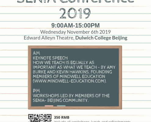Come to the SENIA-Beijing Conference on November 6, 2019 from 9:30-3:30 at Dulwich College Beijing. Morning: Keynote Speech from Mindwell Education Afternoon: Workshops presented by SENIA-Beijing community Costs are 350 RMB. …