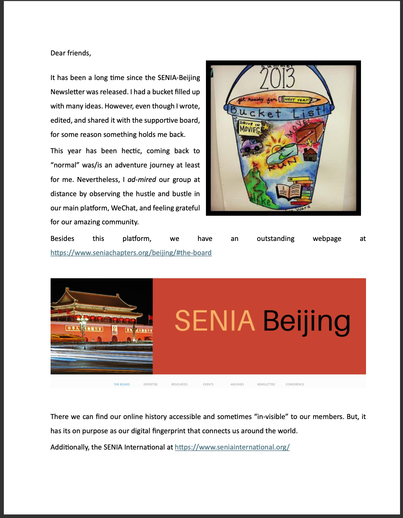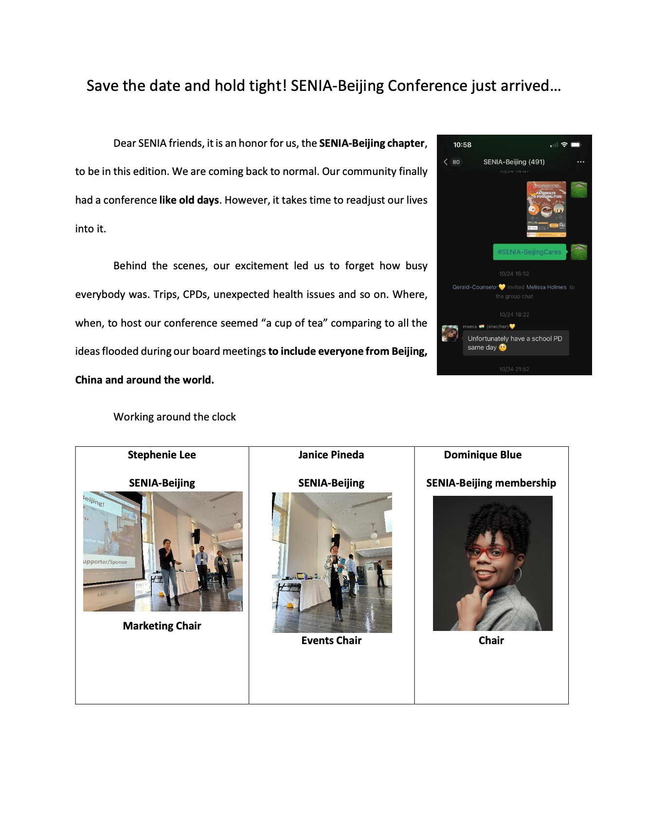 I would like to introduce you to the 2023 – 2024 SENIA-Beijing board with their positions: