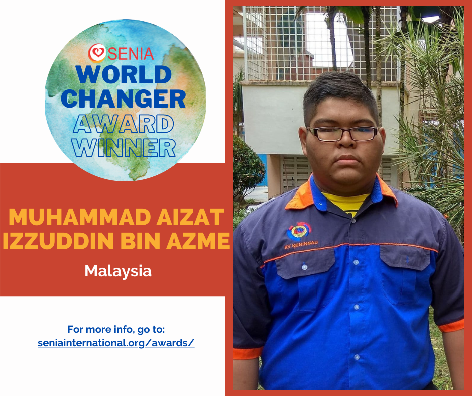 Muhammad Aizat Izzuddin Bin Azme May 2021 SENIA World Changer Award Recipient