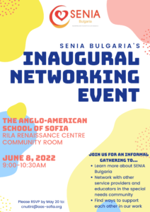 We are proud to invite professionals and educators from across Sofia to attend SENIA Bulgaria’s first networking event. Attendees will learn more about SENIA Bulgaria and our mission, connect with other professionals who work with the special needs community, and learn how we support each other in our vision for a more inclusive world.